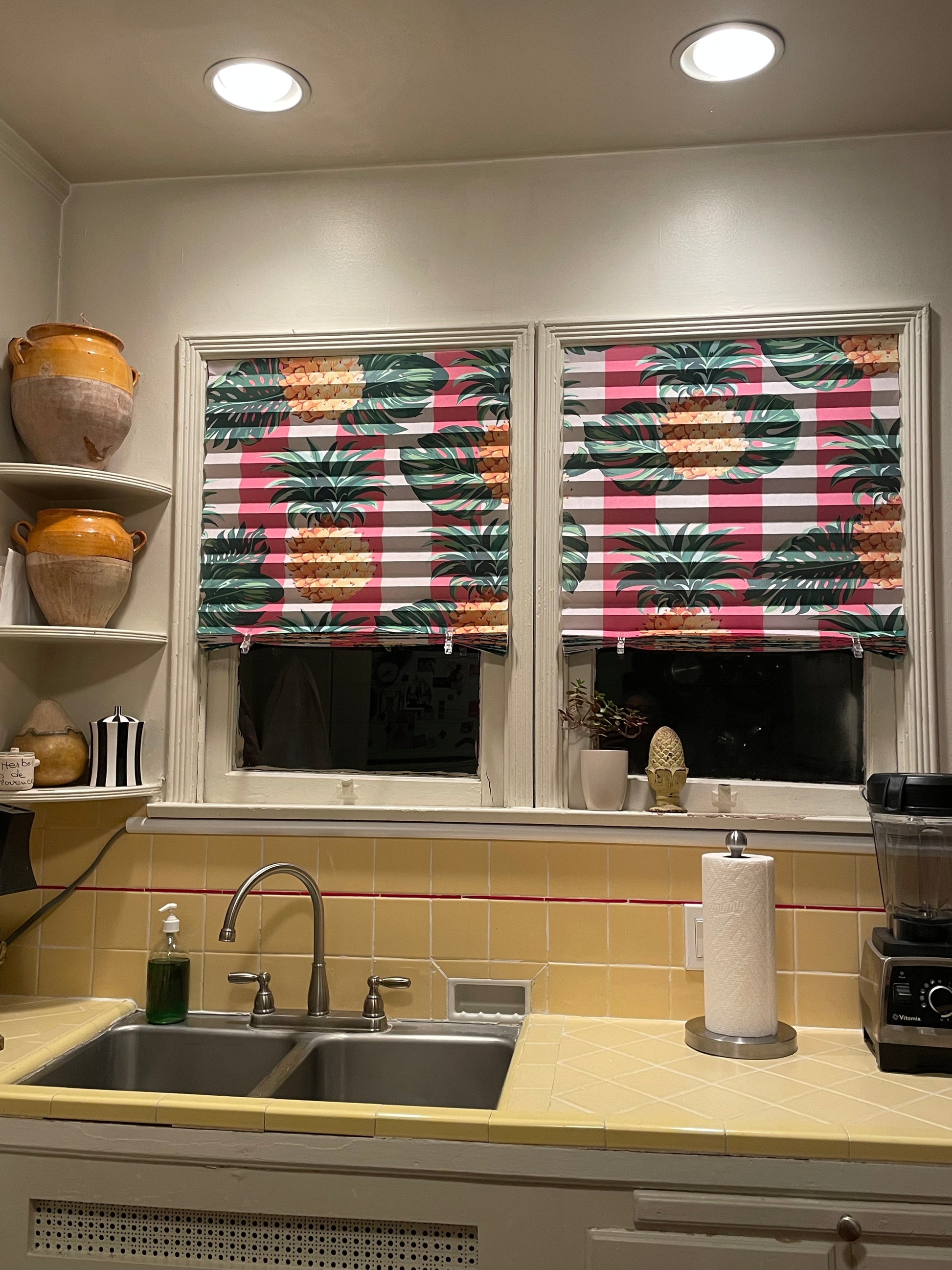 Infuse any room, dorm, apartment, or house with a burst of tropical charm using our pink, yellow, and green pineapples patterned window shades. Crafted from 100% polyester fabric, these shades bring a lively, refreshing vibe to your space. They filter natural light beautifully during the day, creating a warm and cheerful atmosphere, while providing vibrant privacy at night. Ideal for those who want to add a fun and colorful accent to their décor, these shades perfectly balance playful design with practical function.