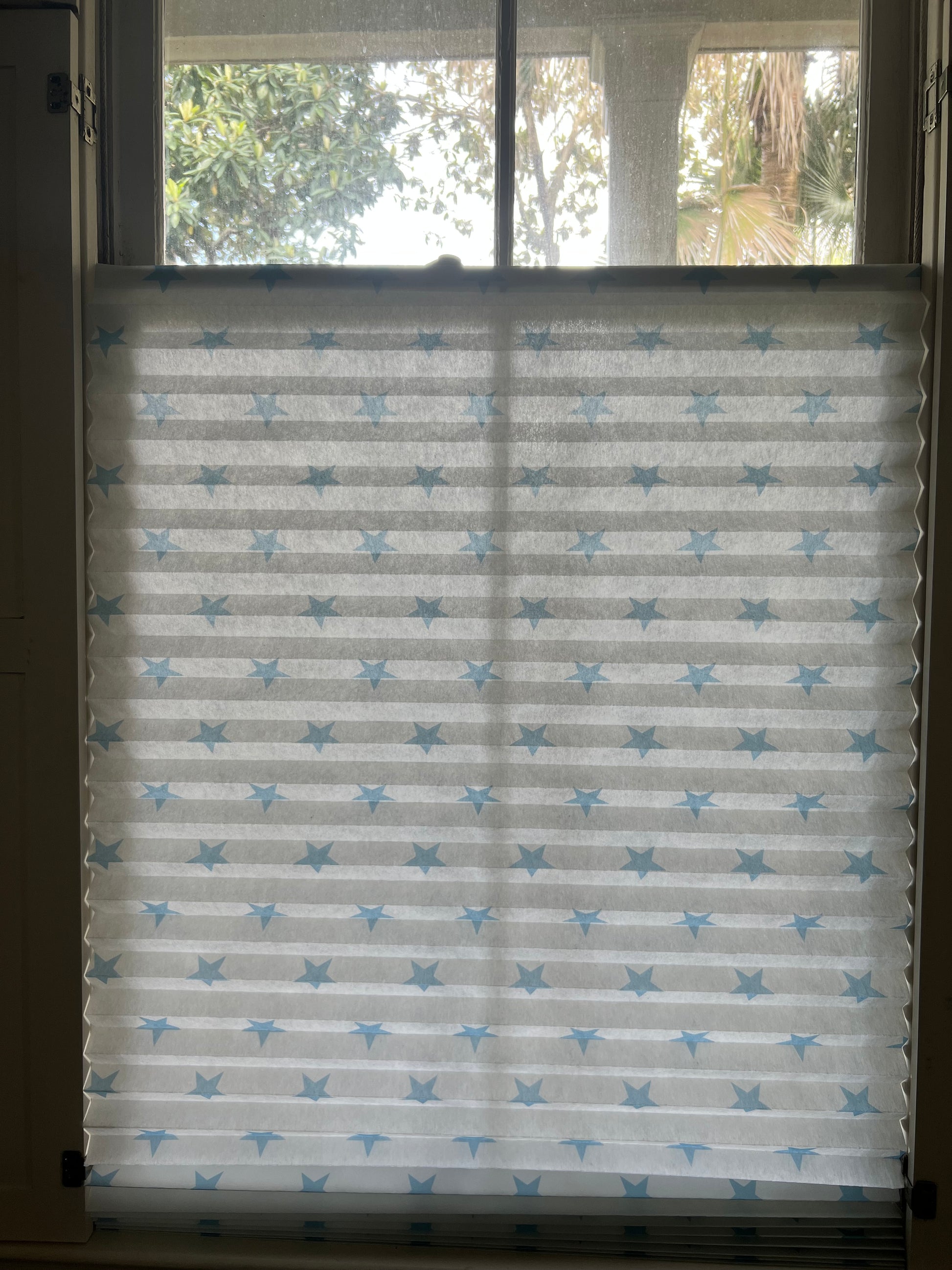 Brighten any room or nursery with our delightful light blue star patterned window shades. These charming shades are crafted from 100% polyester fabric, designed to bring a touch of whimsy and vibrant energy to your space. They offer gentle light filtering by day, creating a soothing atmosphere, and provide vibrant privacy at night, making them perfect for both children’s rooms and any space in need of a playful yet functional décor update.