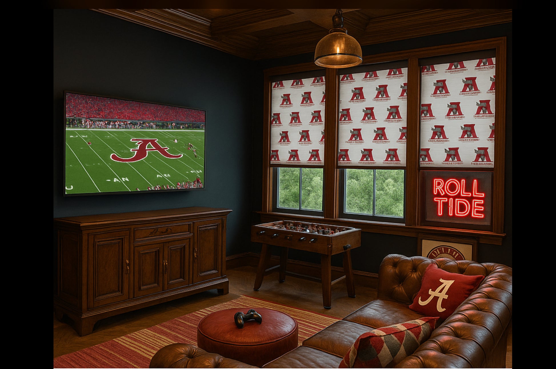 Show your Crimson Tide pride with our officially licensed Alabama Step Through Elephant peel‑and‑stick window shades. Featuring the iconic elephant logo in bold crimson and gray, these shades are perfect for game rooms, dorms, and home offices. Made from 100% polyester fabric, they filter light beautifully during the day and provide privacy at night.